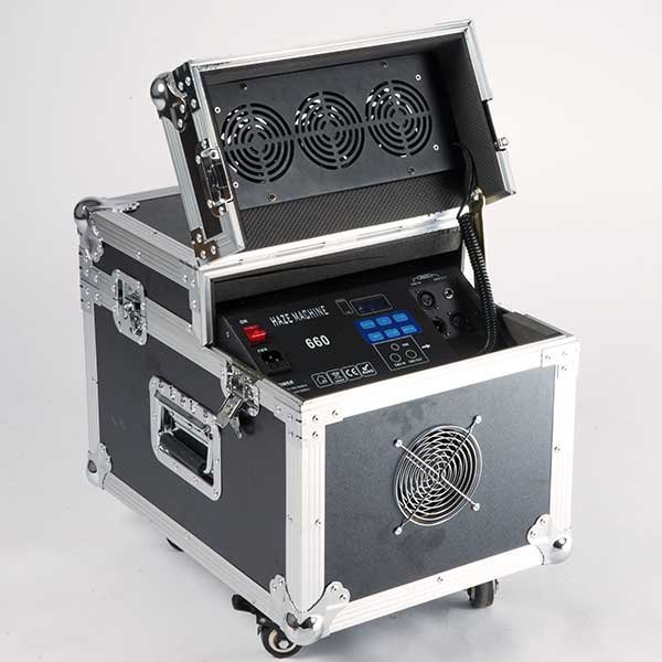 Генератор тумана SHOWLIGHT HZ 660 - это профессиональный, производительный генератор для создания тонкой, невесомой, белоснежной дымовой завесы, которая "не загораживает" происходящее на сцене представление, но составляет прекрасный тандем для лазерного и светового шоу. Прибор вмонтирован в жесткий транспортировочный кейс на колесах, что особенно актуально для гастролирующих артистов и коллективов. Мощный компрессор, мгновенный (всего 35 секунд) разогрев, высокая производительность (80 куб.м/мин), три вентилятора, с регулируемым углом раздува, управление по DMX протоколу или при помощи радио пульта дистанционного управления - перечень основных характеристик этого мощного хейзера.