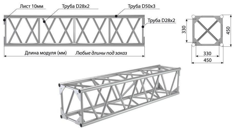 IMLIGHT Q4/35-1500 прямой модуль квадратной конфигурации, 1500мм, 450x450мм, d50x3 \ d28x2мм, крепежный размер 330х330мм