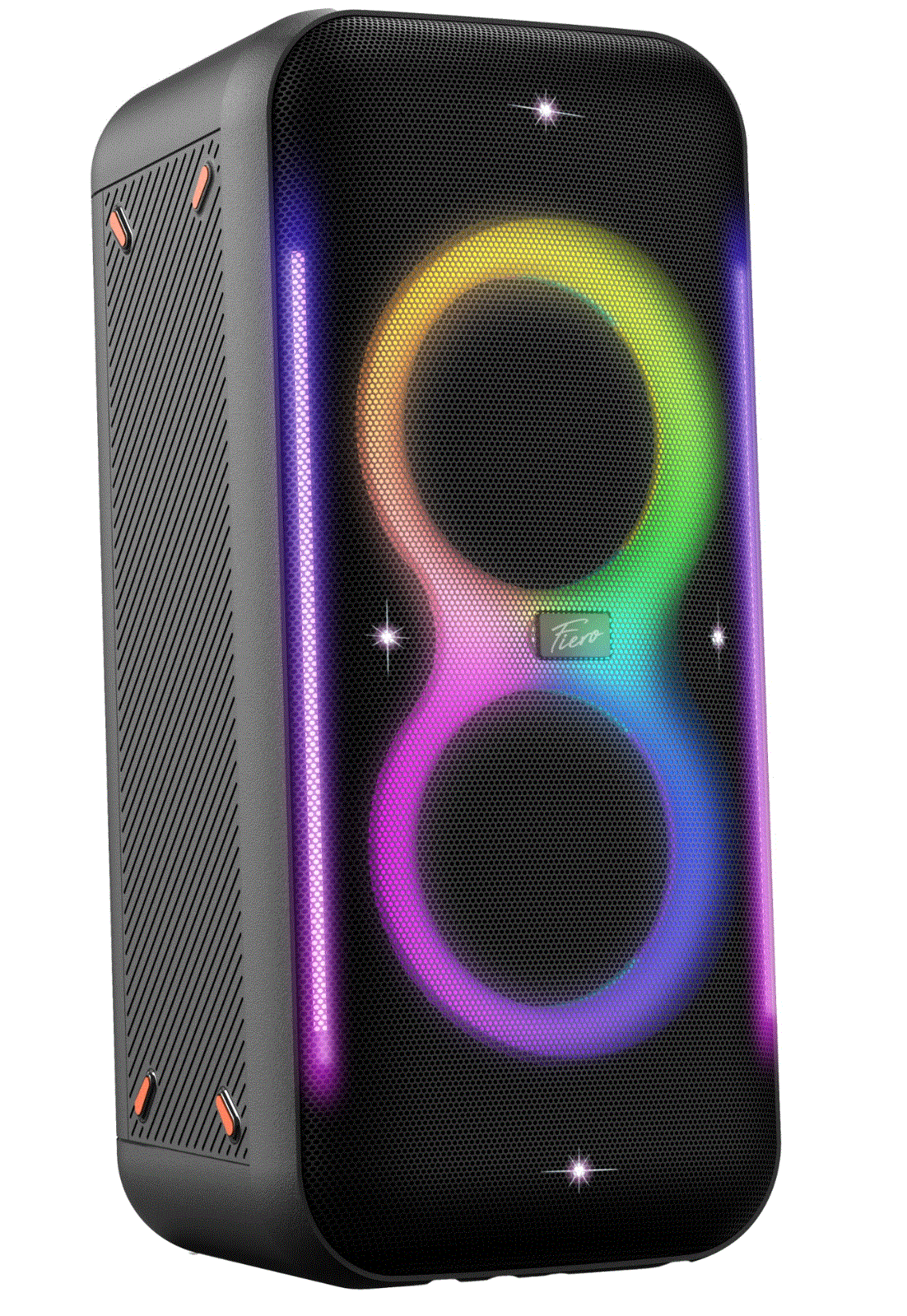 Fiero Emotion 200 FR1000 портативная аудиосистема, черная, многоцветная подсветка, 300 Вт, 50-20 000 Гц, акк. 7500 мА*ч, до 6 часов, 7,3 кг.