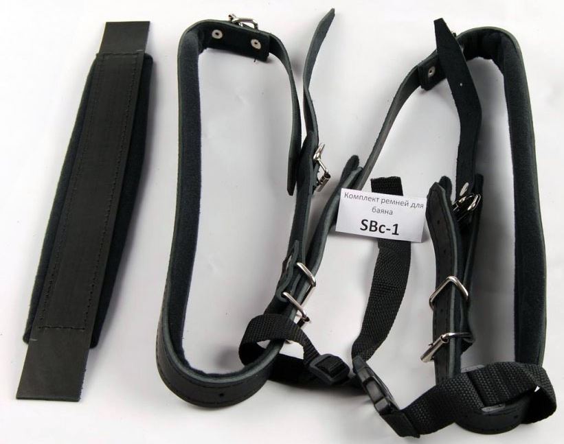 Комплект кожаных ремней для баяна, аккордеона 3/4 с перемычкой. Заплечные ремни: длина max - 100 см., min - 70 см. Левый ремень : длина 39 см, ширина ремня с подушкой – 7 см