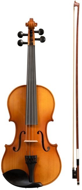 В комплект входит высококачественный смычок с колодкой из черного дерева и инкрустацией из перламутра, а также входят запасные стальные струны и мостик. Входящая в комплект поставки канифоль для скрипичного смычка надежно хранится в закрывающемся пластиковом контейнере. Благодаря этому его можно наносить легко и равномерно.