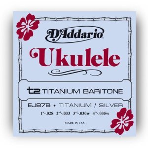 Струны EJ87B разработаны специально для укулеле баритон. Третья и четвертая струны имеют оплетку из посеребренной меди, основа струн — нейлон. Первая и вторая струна изготовлены из ярко звучащего титанового материала. Комплект оптимизирован для использования в стандартном строе DGBE.