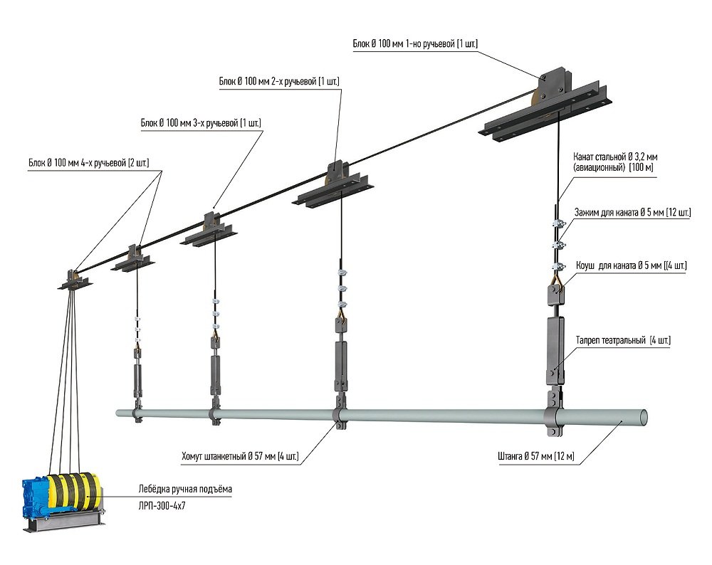 Установка лебёдки на галерее позволяет увеличить закулисное пространство.