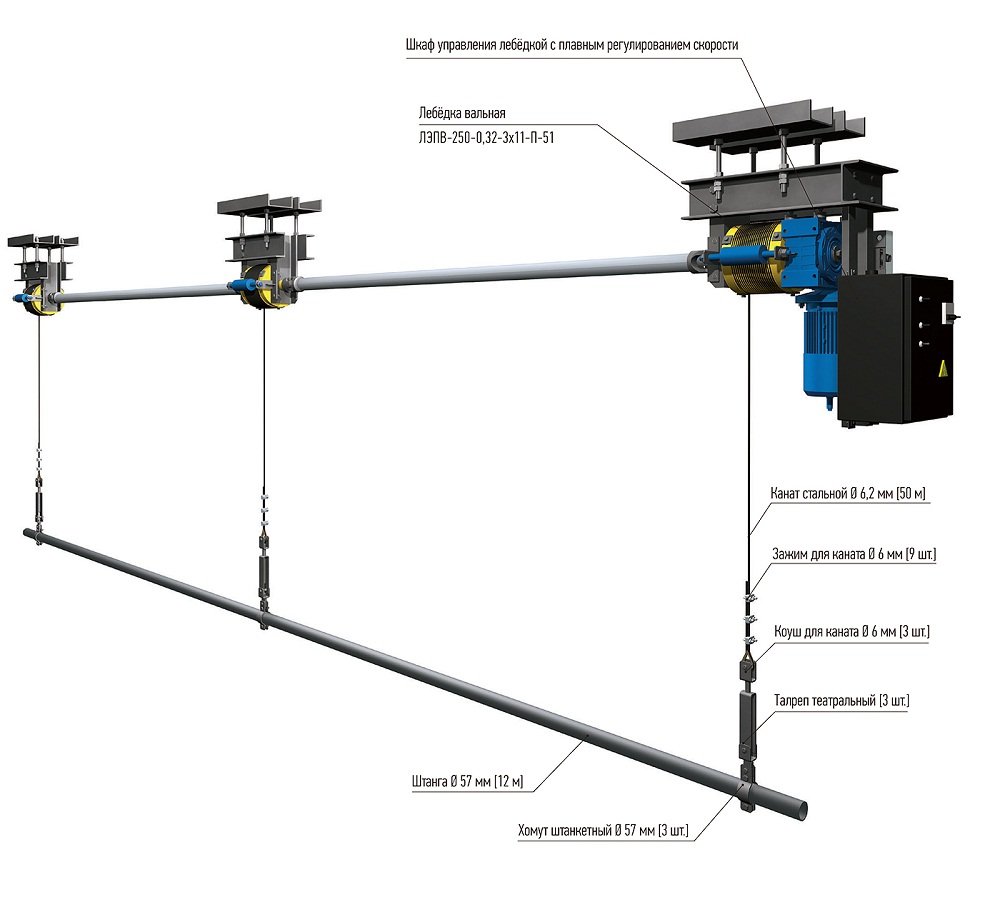 Беспротивовесный декорационный подъём на вальной лебёдке