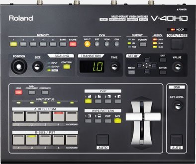 Roland V-40HD имеет 12 входов на четырех каналах, а также один канал с фоном и 2 выходными шинами с независимыми скейлерами на входах и выходах, позволяющими подсоединить HDMI/DVI, RGB, компонентные и композитные источники. Он поддерживает вход/выход расширения вплоть до 1080/60 или 1920x1200 пикселей. Переключатель V-40HD совместим с HDCP и позволяет микшировать защищенные от копирования игры и содержание в формате Blu-ray с другого компьютера или камеры. «Multi-viewer» характеризируется выходом входного источника, который обеспечивает удобное мониторинговое расширение при подсоединении к монитору HDMI.